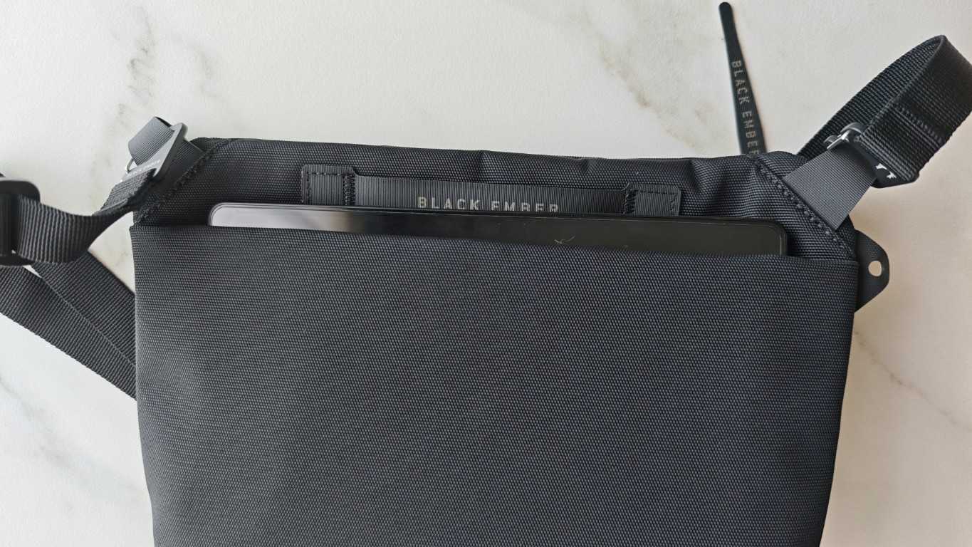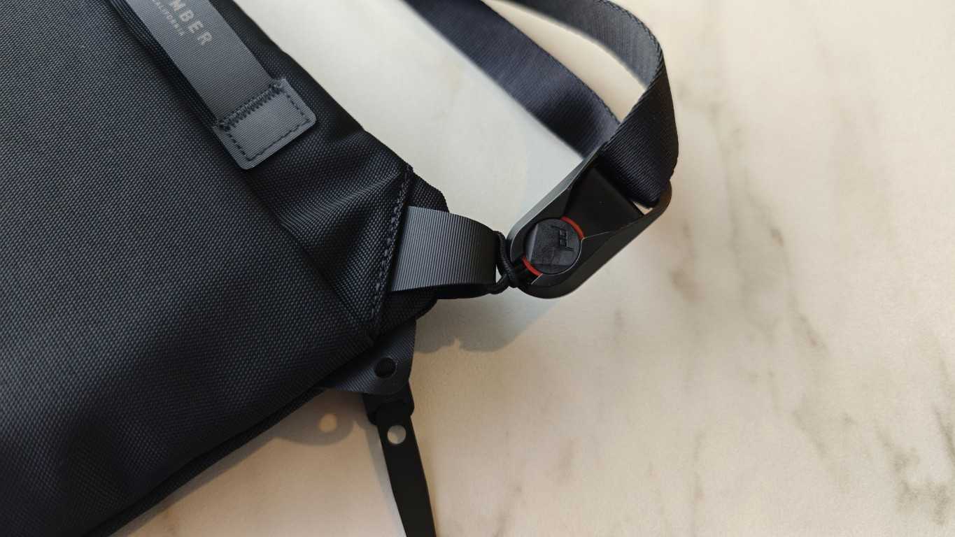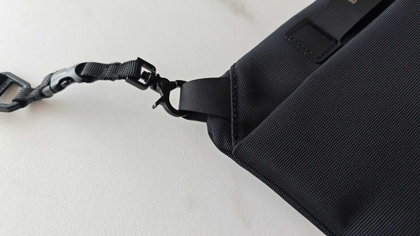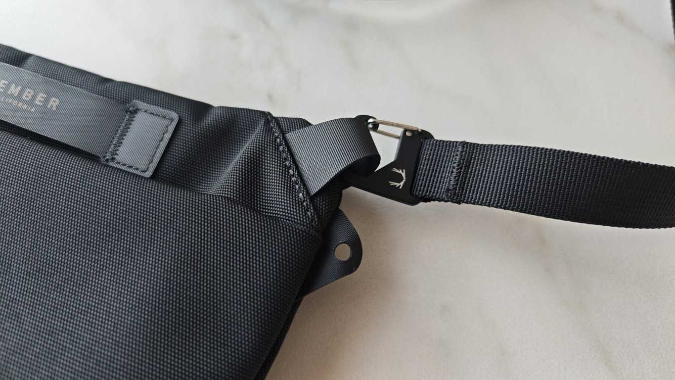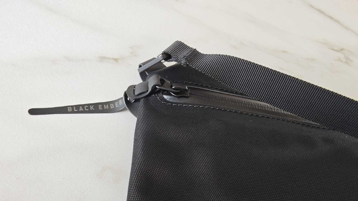 このバッグの最大の特徴は、PFASフリーの高密度ナイロン「EmberTex™」。マットな質感が上品で、ジャケットの内外どちらでも違和感なく使えるデザインです。YKKのAQUAGUARDジッパーや航空機グレードのアルミパーツなど、細部までこだわりが詰まっています。