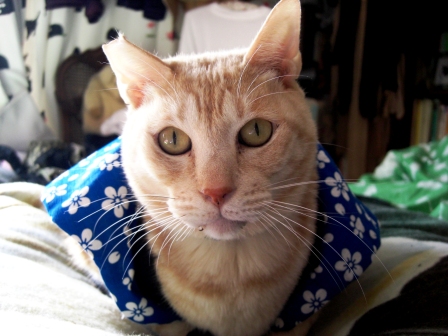 モカです 僕は男の子だから、端午の節句のお祝いをしてもらえるはずだった 僕はママがこの日の為に用意してくれた金太郎風腹掛けを着て、小さな兜をつけて記念写真を撮るはずだった 撮るはずだった が、 起きられなかった 春は眠いのだ せっかくの兜もこの通り なのでママは、柏餅を撮った とてもおいしそうだ だけど、あれ?ひとつ変なのが混じってるよ 後ろから見ると、れれれ・・・しっぽがある! なんだ?こいつ あっまりあお姉ちゃんごめんね、ごめんねー 金太郎風腹掛けはこんな風に着るとよいかな モデルはこのお方 はい、佐々木さんです 最後まで起きられなかった僕なのでした ママ、ごめんね、ごめんねー 今日の衣装や柏にゃんこは、おされな猫の御用達「猫のふく村さん」で購入しました