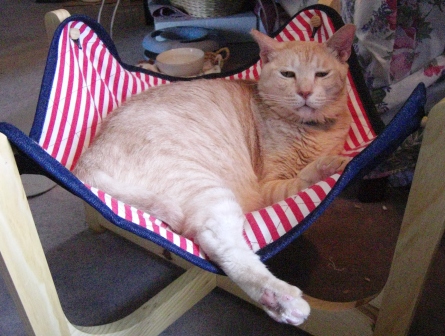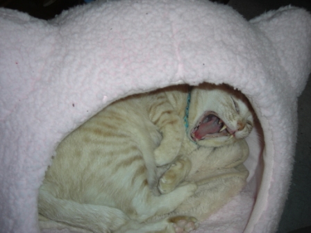 モカです またまたさぼってしまったけど、みなさんお元気ですか?暑いですね!全く ママが夏を快適に過ごすためにってプレゼントしてくれた物は・・・・ これ! ハンモックだよん! どう!いいでしょ、なかなか快適だよん! そんなわけで、眠くて仕方のない僕なのでした 皆様、おやすみなさい あっもちろん、まりあお姉ちゃんも快適にねていらっしゃいますよ 彼女は広いベッドの上で・・・ ほら、ね!!