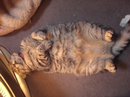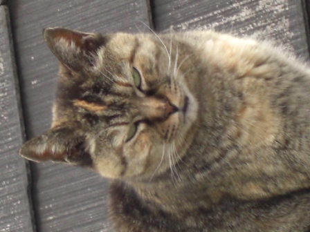 モカですなんかのんびり更新でごめんね そうそ、お庭の新しい仲間をもう一匹紹介するよ それは、このお方、その名もチャーリー 大きなおしりだなー お顔がみたいでしょ! なーるほど、かなりのツワモノですよ、この大きな図体にいかつい肩、目つきもするどいし、チャームポイントはちょび髭模様のお兄さん でも、ママが言うには、とっても大人しくて優しくて、怒ったところを見たことないんだとか・・・ 先に紹介したトラ吉とは縁もゆかりもないんだけど、大人の雄同士なのに喧嘩にならずに、時には並んでご飯待ちしているって 二匹のブームは納屋の屋根の上での日向ぼっこなんだってトタン屋根をミシミシいわせて歩いているとすぐにいることがわかるってママ言ってた。 いいなあー僕も屋根の上で日向ぼっこしたいよー 「トタン屋根の上の日向ぼっこですって!!」・・・・久々登場のまりあ姫 「どんくさいモカなんかすぐに落っこちるわよ」「日向ぼっこは、ここが一番!二本足(人間)のベッドの上」「ここで、ごろごろするのが最高なのよ!」「さあ、今日も一日のんびりと・・・・」 「えっああああのー まりあおねえちゃん・・・・・・・」 「・・・・・・・・・・・・・・」 それは、まずいんじゃない