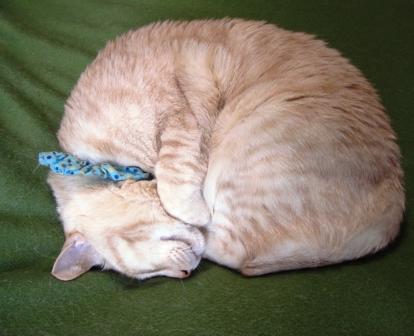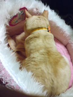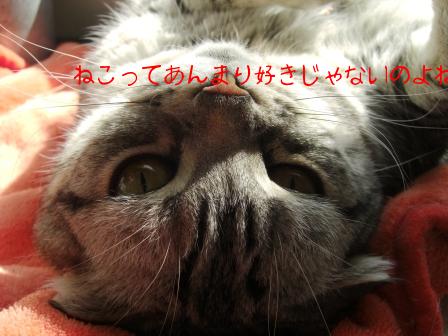 僕は、ママに3度も怒られちゃった。 最初は、今朝くろ兄の残していたカリカリをこっそり盗み食いしたこと二度目は、日向ぼっこ中のまりあお姉ちゃんにちょっかいを出して怒らせちゃったこと 三度目は、突然パソコンを打っているママのキーボードに乗っかっちゃったこと 怒られると僕はちょっと寂しくなっちゃう だって、だってねママ・・・・・・・ 僕ね、少しごはんが足りないんだよ。ママは僕がメタボだって言って前よりカリカリ減らしちゃったもん。それにね、ママ、まりあお姉ちゃんと遊びたかったんだよ。ママがいなくて退屈だったんだもん。 それからね、それからね、ママ僕ね、ママに僕のこと見てもらいたかったんだ。僕の方を向いて欲しかったんだよ。 なのに、なのに・・・・・ ママ怒っちゃった だから、これから僕ね、不貞寝するんだ。