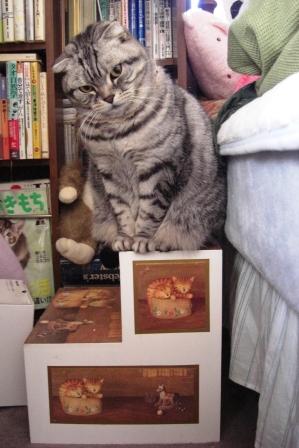 まりあよこの小さな階段素敵でしょ!私専用なのママのベッドに上がる時に使っているの 猫なのにそのくらいジャンプ出来ないのかって思うわよね私、昨年の秋頃からお首が右に傾いてしまったの 右に15度くらいかしらだから、まっすぐに歩けなくなって、ママがすぐに病院に連れて行ってくれたのでもね、原因はよくわからないのシニアのわんちゃんやねこちゃんにおきることが多いんだって神経障害かなって感じ当初はふらついて歩けなくて情けなくて、悲しかったわだって世界が急にゆがんでしまったのだもの でもね、その状態に身体が段々慣れてきたの今では、以前みたいにモカちゃんと追いかけっこも出来るのよ時々バランスをくずしてころんじゃったり、何かにぶつかったりしちゃう事もあるけど高いところへのジャンプはもともと苦手だったから出来なくても気にしないの障害があったって私は猫。誇りを持って生きているのよあなたもがんばって! のんびりいきましょうね!