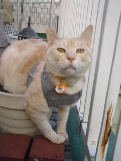 モカです! 最近、お庭猫に仲間入りしたんだよ! もしもし、振り向いてくださいよ、 ちゃんとこちらを向いてくださーい そう、この子がトラ吉。新しい仲間です。よろしくにゃ!!ちっこいお目目のちょっとあかんたれさんらしいよでも、身体は僕よりだいぶんと大きいんだよ小熊ちゃん亡き後、ちいぶうと星子さんで住み分けていたけど、トラ吉君も遠慮がちに遊んでいるよ でもね・・・・・ 実は・・・・・・・ 新しい仲間は彼だけじゃないんだって! 次回のお楽しみ^^ーってことで