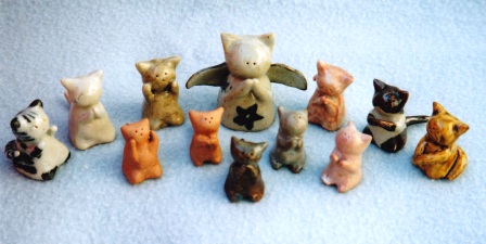 モカです 今日、ママが昔の写真の整理をしていたらこんな写真が出てきたんだって震災前後に陶芸教室に通っていた頃に作った小さな猫達震災で壊れちゃった作品もあるみたいだけど、写真に残っていたんだだからちょっとだけ紹介するね、へたっぴいだけど、一つ一つ僕たち猫へ愛を込めて作ったんだって 猫天使と子猫達だって・・・みんなを守ってくれるようにって思いを込めたんだって 3体の変わり招き猫なんだって 福・福・福 この子は僕モカがママのところへくるひと月前に亡くなったマル兄の子猫の頃を思い出して作ったものなんだって この猫達は楽しそうにお話している、左の猫君は何かをおいしそうに食べているんだみんなが安心して食べられるようにって思いを込めているんだって ママ、みんなの為にありがとうね!まだ少しあるけどまた明日のお楽しみ