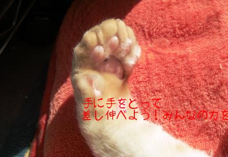 モカです 東日本大地震の報道が連日流れて、ママはちょっと気が滅入っているらしい 人も動物も苦しんでいるって思うとね、あっどっちも同じだよね。 それで、僕はちょっと寂しい。ママが忙しいのもあってあんまり遊んでくれないから。 そんな時は猫は猫同志なんていっても、ほら、まりあお姉ちゃんは こうだからね、 だから、だから僕は、ゲン兄とラブラブしてるんだ いつだって、仲間がいるって嬉しいね! 僕はいつも一人、いや一匹じゃない ママもいるし、ゲン兄達一緒に暮す仲間がいる みんな家族なんだよね! 家族がバラバラになったらどんなに悲しいだろう 被災地でそんな家族の絆が壊れないように、壊されないように・・・・ せっかく津波から生き延びた仲間達、原発の避難地で取り残されている仲間達をどうか、応援してあげて欲しいんだ みんな出来ることを細くても長く出来ればいいね