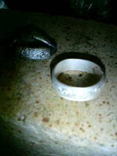 やっとロウ付け出来る時間がつくれました買付けした時に、練習用に手頃なお値段の銀板がありましたので使ってみました結果は、4個作りまして~成功が2個と恥ずかしい結果に何事もやらないとうまくなりませんから、これからは少しづつやっていきたいって思います成功した1個を磨いてみました練習を終わりまして、社長のリングもロウ付け&仕上げまでやりました一番、ロウ付けが成功しまして一安心です後は、バングル製作に取り掛かります