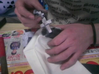 今日は以前から製作に興味があったH氏を招いてプチアクセ教室開催です午前10時頃から先ほどまでやってました本当にアクセが好きらしく、楽しく製作していました慣れない携帯で撮った為、ピンボケ&サイズは気にしないで下さい・・・。昼食も抜いて製作に没頭してました完成したのがこちらです納得するまで、根気欲やってまして感心しましたでも、形が見えてきたのか~にやけながら製作に嬉しくなってしまいました