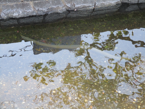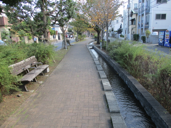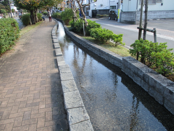 しかし、漁業権の放棄や宅地化によって、川であることの必要性が次第に薄れて、昭和48年(1973)には、川の埋め立て工事が始められました。そして昭和52年(1977)、緑化推進事業の一環として、道路中央部に木々が植えられた緑の道路が完成しました。