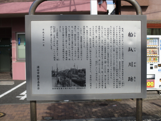 かつては、この川から農業用の水路(堰)がひかれ、田んぼへ水を運んでいました。また、漁業用の船が多く係留され、採ってきた魚介類を荷揚げする光景がよく見られました。漁へ行くときは、ここから旧江戸川に出て、海へと下っていきました。「船圦」という呼び方は、ここからきたものを思われます。