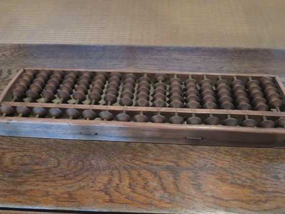 店に置いてあった五玉そろばん。MoMo太郎の祖父は、ずっと五玉そろばん使っていました。