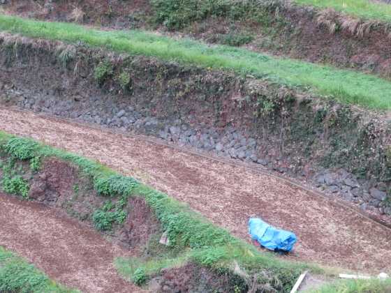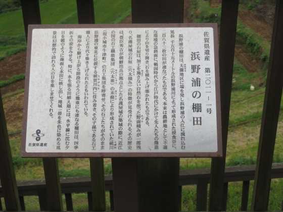戦国時代から江戸時代にかけて先人たちの偉業により山を切り開き、石を積み上げ築かれてきた。棚田の石垣は、加工を施さない自然石を使った野面(のづら)積みが一部残り、名古屋城の石垣、穴太(あのう)積みの特徴が見受けられる。とありました。