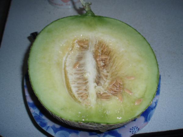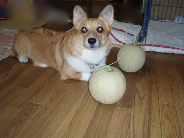 モモが住むのは南国伊豆、モモパパの仕事関係でマスクメロンをいただきました。温泉熱を利用した温室栽培でほぼ1年中メロンが作られています。メロン屋さんが「もう結構熟してるからジュースにでもしてあげな、犬にだよっ!」とモモのためにくれたものでした。当然、冷蔵庫で冷やして半分に切り分けパパとママで食べました。実がジューシーでとてもおいしかったです。メロンの器のままモモに舐めさせようとしましたが食いつきがあまりよくなかったのでヨーグルトを混ぜてあげたらおいしそうにむしゃぶりついていました。スイカップではなく、メロンカップ!モモがボインになった日でした。(下ネタかっ!)