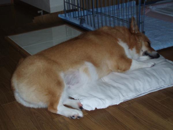 3年前にモモがいたペットショップに可愛いコーギーの女の子がいました。HPで写真を見たら、モモパパモモママ共「ビビビッ」となりました。モモの妹分にいいんじゃないかなあと思い、週末ペットショップに見に行こうと思っていたのですが・・・10月4日の朝からモモの具合が良くありません。血の混ざった唾液を嘔吐し、極度な下痢、血便もしました。食欲がないらしくご飯も食べません。午前中~午後になっても症状は変わらず夕方病院へ。モモパパは仕事でしたのでモモママが一人でモモを連れて行きました。病院に着くなりモモは大好きな先生に大興奮!体温を測りましたが熱はないそうです。しかしお尻から棒を突っ込むと腸の中が出血している模様。元々うちのモモは胃腸が弱い子なので何らかの原因で腸が炎症を起こしているらしいと・・・嘔吐するので止血剤と炎症をおさえる注射を打ってもらい家に戻ってきました。急にモモが具合が悪くなったのは何かと心当たりはありませんが唯一、前日の夜中にモモがパパを起こして「トイレに行きたい」と言うのです。パパはすぐにはモモをトイレに連れて行きませんでした。(寝ぼけていたから)そのときしたウ○チは少し黒くて硬かったんですが・・・そのことが関係しているのか、それとも妹分のコーギーを迎いいれようかと話していたのがいけなかったのでしょうか?モモがそのことをストレスと感じて具合が悪くなったんでしょうか?昨日は1食も食べられませんでしたが注射が効いてきたのか少しずつ良くなってきています。今日(5日)の朝ごはんは無我夢中で食べたそうです。1日中寝ていますがママに甘えています。早く良くなってね。パパやママはモモだけのパパやママでいるからね。もしかしてモモの妹になるかもしれなかったコーギーさん、早くいい飼い主さんの元に行けるよう祈っています。