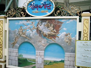 ↑ 蚕室(チャムシル)にある「ロッテワールド」の中の天国の階段の壁画です。もっと大きいかと思いましたそれとも、もうだいぶ前のドラマなので小さくしちゃったのかしら??仁寺洞から、どの地下鉄の駅に行こうかと悩んだんですが、たまたま一番近くにあった「鐘路3街」という駅に向かって地図を見ながらなんとかたどり着き、5号線に乗り、「往十里」という駅で2号線に乗り換えて「蚕室」へ行きました。途中から地上に出て、あの漢江を渡り(すごい大きい?河でした)ずっと外の景色を見ながら楽しい地下鉄乗車になりましたずっと地下かと思っていたので、あんなに地上を走るんだ~とちょっと意外でした。でも、景色が見れてよかったです。「蚕室」はまずロッテワールドへ。もちろん、天国の階段の壁画とメリーゴーランドをみるためです。(ミーハーですみません)韓国ドラマの中で、わりと最初のほうに見たのがクォンサンウの「天国の階段」だったので、かなりカルチャーショック??というか、あの強烈な展開がとても印象に残りました。なので、ぜひ行ってみたかったんです。↑ チェジウや、サンウ達が何回も乗ってたメリーゴーランドです。ロッテワールドは、かなり広く思ったよりも楽しそうな乗り物がたくさんあって、びっくりしました。もう少し小規模なものかと勝手に思っていたので・・・。↑ ロッテワールドの中にあるアイススケートリンクですここもドラマで何回も出てきますね。この写真には写っていませんが、このとき、小学生くらいの子供達が、ここでスピードスケートの練習をしていたんです。で、思い出しました!トリノ五輪で、韓国がスケートのショートトラックとかで、たくさんメダル取りましたよね~さすが、韓国、未来のオリンピック選手がうまれるかもしれませんね↑ 。ロッテ百貨店の前の広場から撮ったマンションです。ここのまわりにこういった高層のマンションがたくさんありました。韓国に着いてすぐにホテルまで連れていってくれたガイドさんが、この漢江の南側は、北側に比べて高級な建物が多いというようなことを言ってました。今回は時間がなくて江南のほうには行けなかったんですが、次回はぜひアックジョンドンにも行ってみたいですね。
