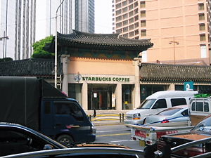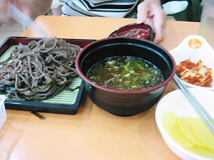 ↑ 「仁寺洞」(インサドン)で食べた、「そば」さて、つぎはユジンの家からまたまたテクテク歩いて「仁寺洞」(インサドン)へ。風情のあるお店がいろいろあるのに、いきなりなぜ「そば」かというとですねぇ、何回も言いますが、とても暑くて、さらに景福宮から、ユジンの家まで歩いて、さらにまた仁寺洞まで歩いて、かなりバテバテだったんです真夏ではないので、まだマシだったんですが、ず~っと歩いたので、なんでもいいからさっぱりしたものが食べたくていろいろなお店があったんですが、どこも、海鮮チゲ鍋みたいなものはあるんですが、見るだけで暑そうで涼しかったらぜひ食べたかったんですけどねぇ。と、いうわけで、なぜか日本蕎麦があるお店があって・・・食べてみようということになりました。味はですね、思ったより美味しかったですよ、麺も固めにゆでてあったし、つゆもまぁまぁ・・市販のだと思いますけど。↑ で、もう一品は「ビビンバ」です。もう混ぜちゃったあとですが結論からいうと、そばも美味しかったんですが、やっぱりビビンバを食べたらとても美味しくて、暑くて食欲なかったことなんて忘れちゃいました一緒にでたキムチも美味しかったし↑ ズバリ!「仁寺洞」という韓国伝統茶のお店で、なつめ茶とゆず茶を飲みましたおなかも落ち着いて、しばし「仁寺洞」でお買い物お店を見るのに一生懸命で、写真ほとんど撮らなくて。残念だったなぁ。いろいろ韓国の伝統的なものが売っていましたが、お土産に小物と、あと、暑かったので(いい加減しつこいね;;)扇子とか買いました~とにかく安くてびっくりでした。お茶のお店はインテリアも素敵でくつろげました。ゆず茶は日本で飲むのと同じでしたが、なつめ茶は、こってりしたコクとココア??のような甘み??と・・・・なんとも表現しがたい味でしたが、美味しくいただけましたよ。↑ 「仁寺洞」にある「スタバ」ですここは、世界で始めて自国語の看板を掲げていることで有名な、スターバックスです。知ってる人も多いと思いますが。なかなかいいですよねーこの看板「仁寺洞」(インサドン)はとても素敵なところでした、平日だったせいか、意外に人も少なめでしたし・・・もっと写真を撮ってくればよかったな~とちょっと後悔してます。さて、明日は、蚕室(チャムシル)です。
