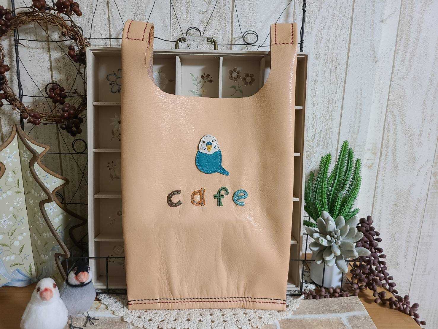 革でエコバッグ作ってみました。折りたためるけど、,コンパクトにはならないからエコバッグとして使うにはちょっと苦しいかも。