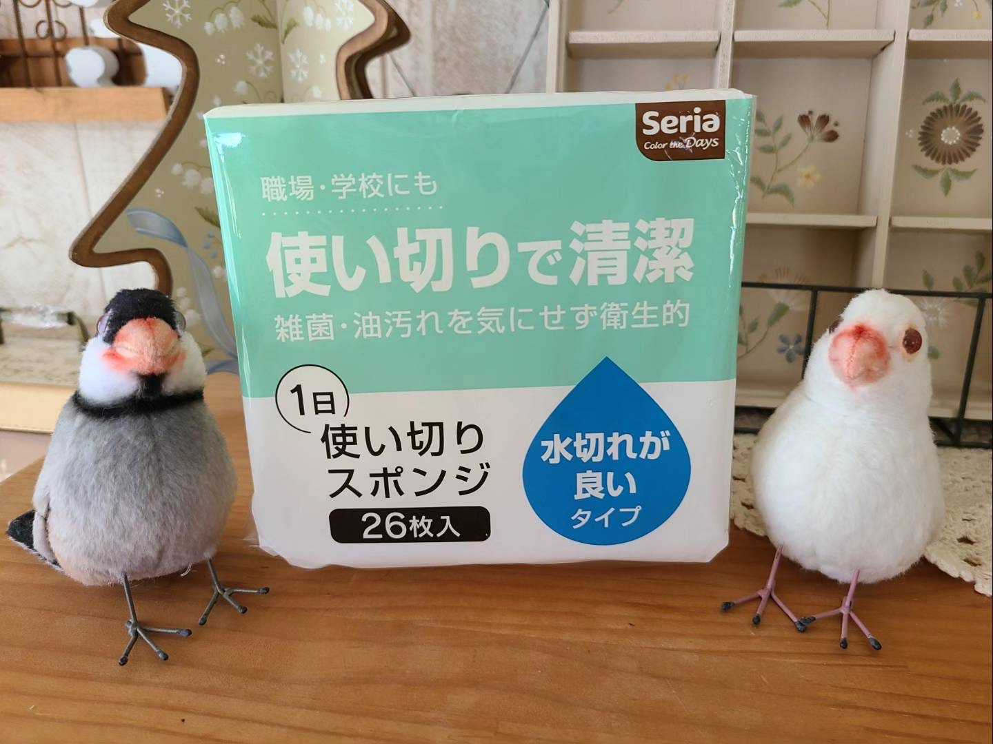 初めは洗面所用に買ってみたのですが、使い捨てても惜しくないSeriaの26枚入って110円。鳥の水入れを洗うのに、隅々まで洗えて使いやすいのでお勧めです。