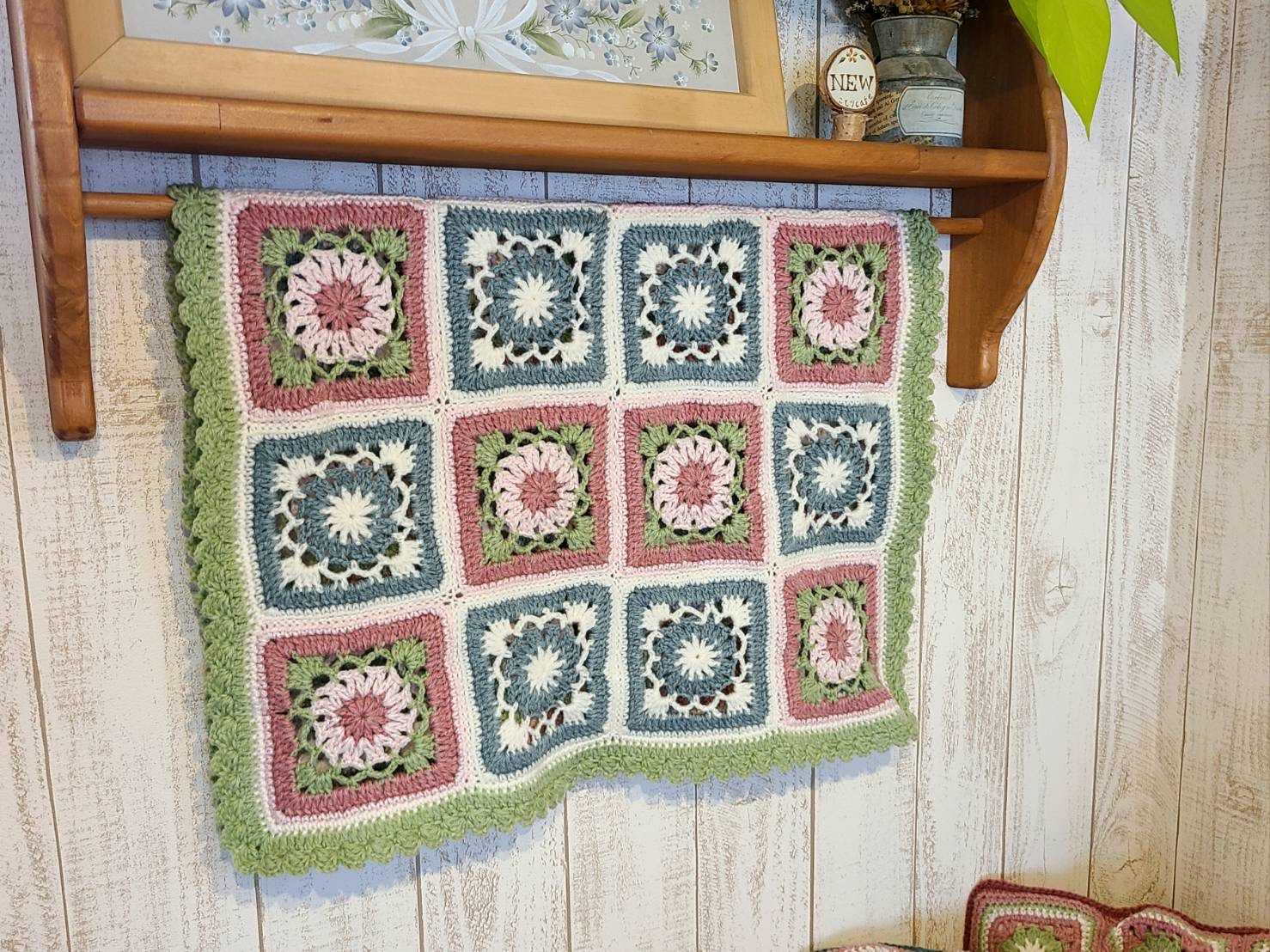 80になる母の手仕事は衰えることがない。私は実家に毛糸を持っていき、このぐらいの大きさでというだけでと手を広げるだけでぴったりの大きさに仕上げてくれる。今まで茶色メインのモチーフ編みを飾っていたので、部屋の雰囲気が変わりました。