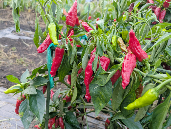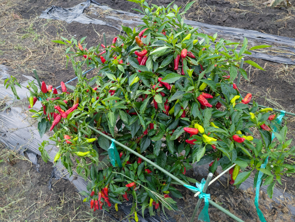忘れ去られたししとうが赤く色づいてます