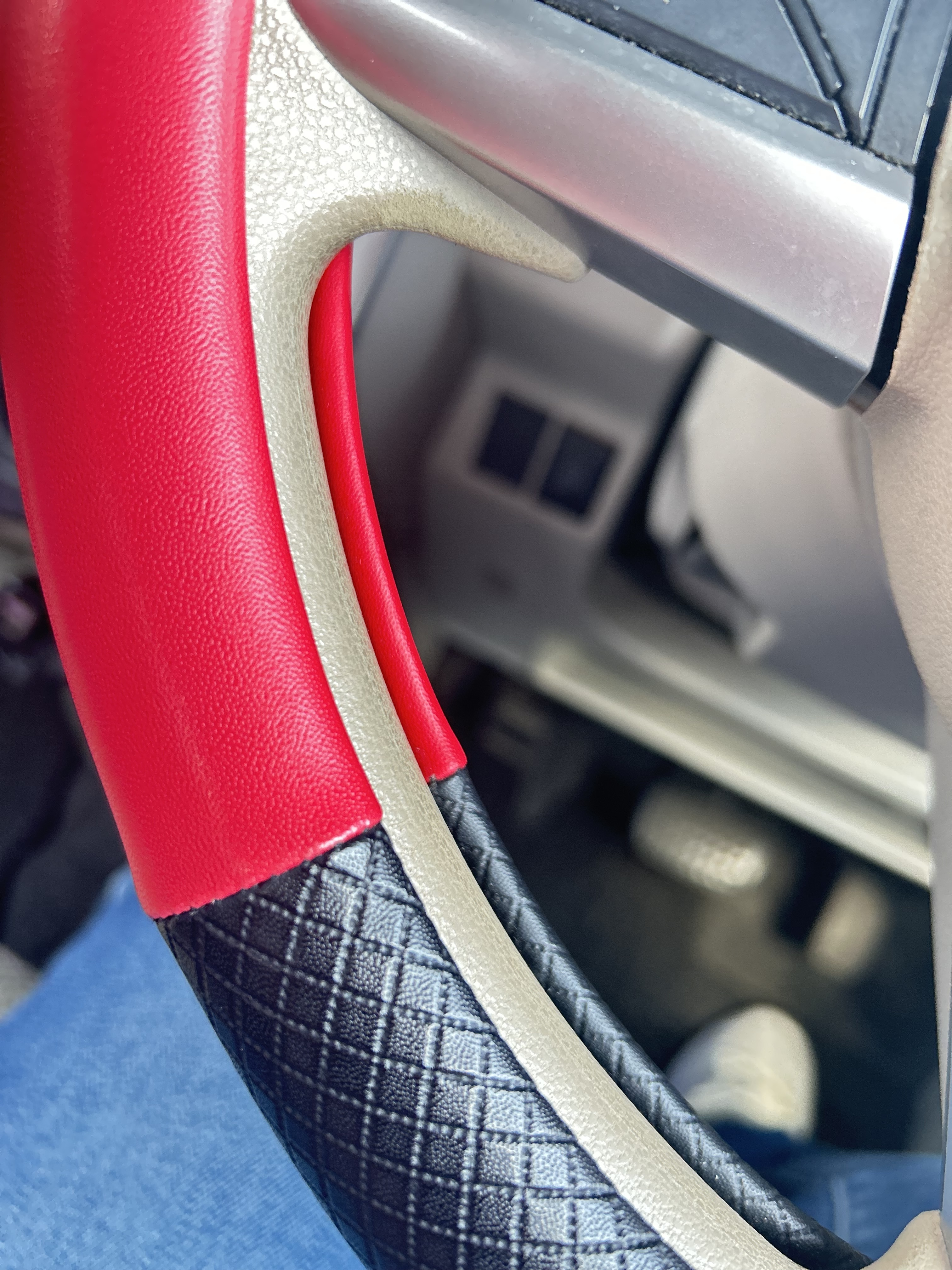 愛車のハンドル長年乗って日に当たってポロポロビニールが粉みたいに取れて来て…運転したら手についてヤバってなって来たのでハンドルカバーを付けてるんです。まぁ、このハンドルカバーもすでに付けて一年以上経つよなぁとふと赤いとこみたらなんとなーく焼けてるよねって。写真は綺麗に見えるかもしれないけど褪色してるよなぁ。そろそろ変えよかなぁ。前の車の時はドナルドダックの付けてたけどこれ買う時に見つからなかったのよなぁ。次は可愛いの欲しいなぁ。【ミッキーマウス】ハンドルカバーステアリングカバー ハンドル カスタム かわいい 握りやすい NAPOLEX ナポレックス 車用品 カー用品【日本限定販売】ディズニー ライセンス商品ブラック/レッド/ホワイト/シルバー【P5倍】【100円OFFクーポン】【楽天1位!】ハンドルカバー 軽自動車 sサイズ ステアリングカバー おしゃれ 普通車 38cm O型 レザー Sサイズ37.0~37.9cm フィット カローラ ノート nbox セレナ エブリィ スペーシア コンパクトカー ミニバン