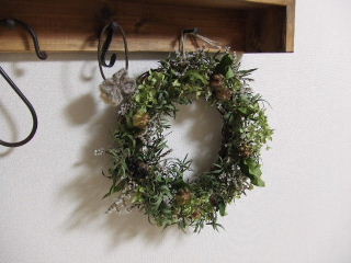 ひええ~更新さぼりすぎてましたぁ~^^;最近ぼーっと過ごすことが多くてやりたいことは頭の中だけで動いていて実行になかなかうつしていませ~ん(><)そんな中でも少しだけ 手を動かしていることは編み物を少ししています。でも すぐに肩こりになってしまうので一日30分も編んでいないかも。。。それでも、楽しんで編んでます (^^) 最近 可愛いリースを見つけたので我が家にお迎えしましたやっぱ グリーンがお部屋にあると気分が明るくなります。ここに飾っています。しばらくリースに癒されそうです (*^^*)