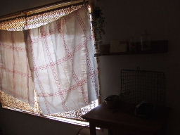 西日が差し込む窓の模様替えをしました。西日が差し込むということは夏はとっても暑くなる窓です。だからぜったいにすだれは はずせません^^;個人的にすだれが好きなんで冬場でもつけていることも多いんですけどねすだれだけだと 外から見えちゃうんじゃないかと心配もあるので こんな感じにしてみました。逆光でごめんなさい見えにくいですよね^^;カーテンレールは使わず麻ひもで吊ってみました。模様替えって楽しいな (^O^)