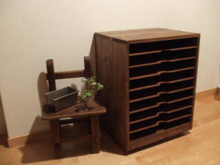 前回 日記で初のオーダー家具を紹介しましたが気に入っていただきまた、同じものを2つご注文いただきました。 パパさんなかなか休みがないので時間がかかったのですがやっと出来上がり 今日納品させていただきました。配達する前に 我が家で撮影今度のは 棚と棚の上に板をのせて 机みたいになっています。椅子を置いてみるとすごくいい感じになったのでこのまま 我が家においておきたかったくらいです(^_^) お嫁に行った家具はイベントでも使っていただけるそうです。パパさん作の家具気に入ってもらえて ほんと嬉しいです♪