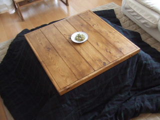 11月に入ってから 寒くなりましたよね~寒さが本格的になる前にコタツの準備をしました。コタツって あんまり気に入るのがなくて毎年 妥協して出していたんだけど今年は工夫しました (^_^) まずはコタツの天板をパパさんに作ってもらいました。(足の部分は今まで使っていたコタツを使用しています)天板を木にするだけで ずいぶんと雰囲気かわりました(^_^) 次にコタツ布団です。コタツ布団カバーとして 気に入るのが見つからなかったのでダブルサイズのブラックチェックの布団カバーをコタツ布団カバーにしちゃいました。今年はお気に入りのコタツでほかほか出来そうです (*^^*)
