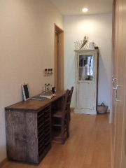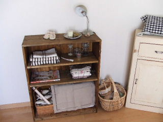 今日は 久々にお友達のお家におじゃましてきました。ここでよくコメントを残してくれている akkiちゃん家に行ってきました。前も可愛い感じのインテリアだったんだけど模様替えをして ますます素敵なお家になっていました。写真の左に写っている家具は 古道具屋さんで買ってきてステインを塗ったそうです。とっても好みの家具になっていました。布作品をよく作る akkiちゃんはその棚の中にたくさんの布を入れていて いい感じでした(*^^*)ほかのスペースもakkiちゃんらしさが出ていて とっても可愛かったです。akkiちゃん家には ほしいものがいっぱいたくさんの刺激をもらって帰ってきました。あ~ 私もまた 模様替えしたくなってきたなぁ~
