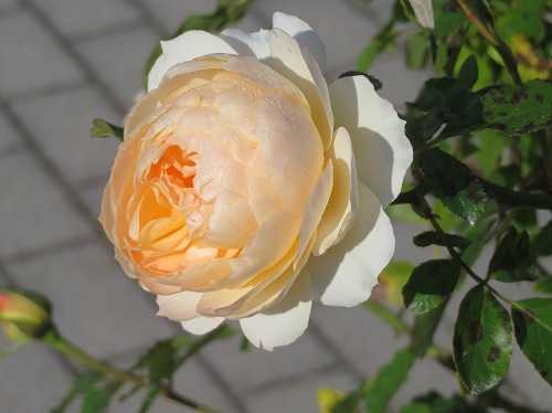 鉢植えのバラ、粉粧楼 虫に好かれやすいけれど・・ やわらかそうな薄ピンク…