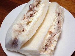 ネットを うろついていたら面白い サンドイッチを見つけましたその名は「納豆コーヒーゼリーサンド」「鞍馬サンド」と言うお店の名物らしいです納豆と生クリームとコーヒーゼリーをパンで挟んだもの・・・ですが味が 想像できません話のタネに 買って食べてみようかな?(すでにブログのネタにしていますが)あなたは このサンドを食べてみたいですか?私はこっちのえびふりゃーサンドの方を 食べたいニャー