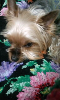 実家には8歳になるヨークシャテリアがいて、これが可愛いのです。写真は眠そうでちょっと不細工ですが、私の膝の上で眠る様子がもう愛らしくて!