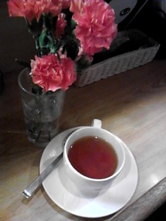 ティーのメニューが増えました!ブルーベリー&ラズベリーティーやアップルティー、そしてちょっと変り種なのが、白ワイン&マスカットティーです。ちょっと変わっているのが好きなワタシは迷わず白ワイン&マスカットのティーを注文。本当に白ワイン&マスカットの香りがするのかな~と疑心暗鬼でした。香りは…ほのかに確かにマスカットの香りがします。でもそれより驚いたのが白ワインとマスカットの後味が口の中に残るということ!何ともまろやかな味わいです。ほのかで繊細な感じなので、よお~く味あわないと、白ワインとマスカットだなんて思えないかも!でも爽やかな味わいのティーですよ!女性にお勧めですねvペットショップボーイズの曲を聴きながら頂きましたv