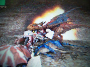 スタン狙いで頭を攻撃するも、小さすぎてなかなか狙えない(><;)そうしてる間に尻尾回しや火炎ブレスくらって体力がなくなりそうになったとき・・・