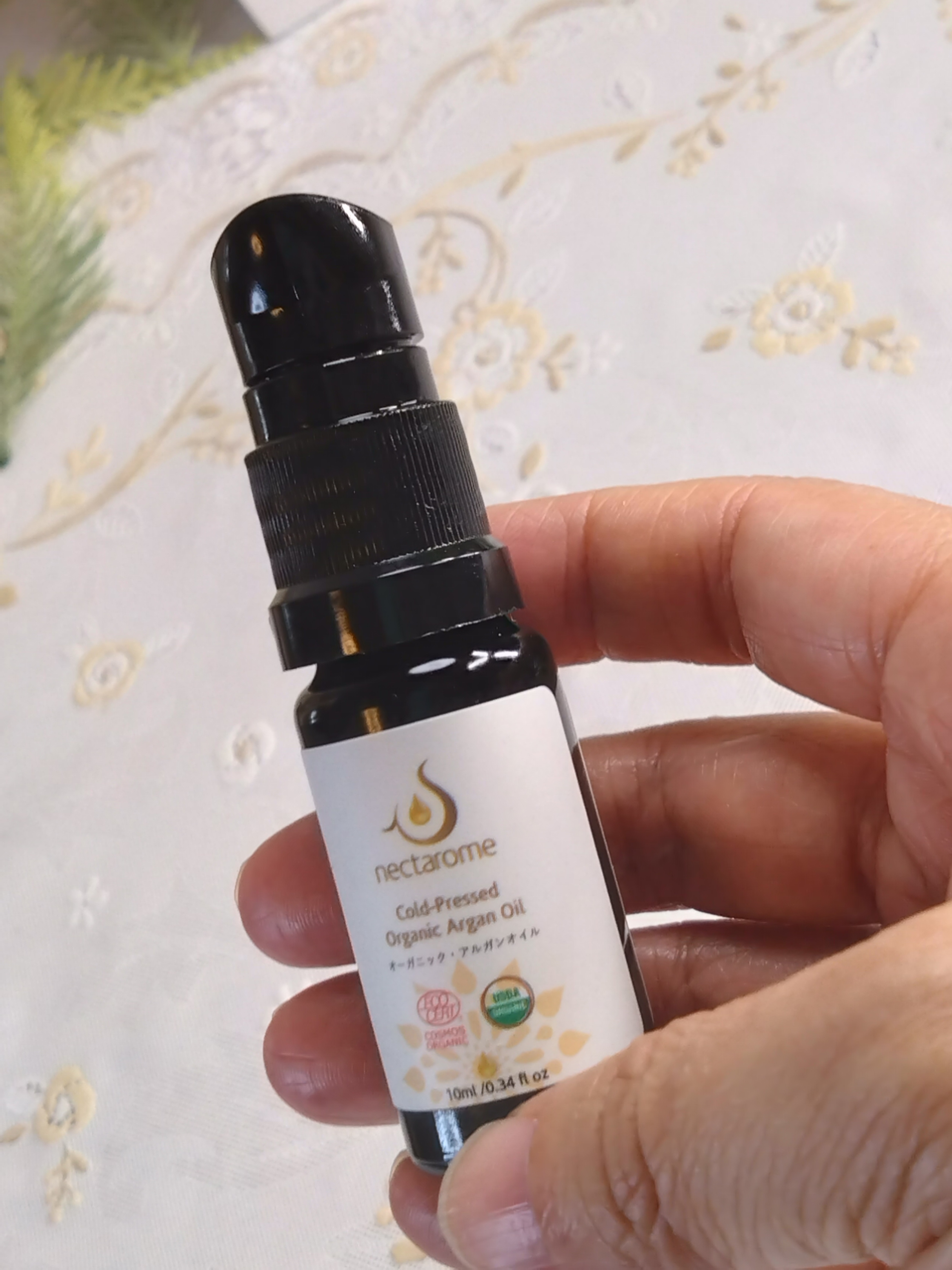 こんにちわ 無添加好き ひろりんです キャリアオイルの中でも、とっても人気の高いアルガンオイルを使ってみました。今回、ひろりんが使ってみたのは、【NECTAROME (ネクタローム)さんのオーガニック・アルガンオイル】です。NECTAROME (ネクタローム)さんでは、只今InstagramとXでは【オーガニック・アルガンオイル】8月31日〆でプレゼントキャンペーン開催中だよ 皆、是非行ってみてね🎵Instagram@nectaromejapanX@nectarome_japanNECTAROME (ネクタローム)さんのオーガニック・アルガンオイルは、アメリカ農務省のUSDAオーガニックやエコサートを取得されていて、ISO22176認証工場にて製造されています。 その品質の高さから、世界中の五つ星ホテルで採用されていて、日本でもホテルニューオータニのアメニティなどでも使われています。 アルガンオイルは、紫外線防止効果もあるので(SPFは5〜9程度)、夏の紫外線に負けないお肌を作る為にもお薦めで、お肌に元々ある成分に近い成分で出来ているので、敏感肌の方にも刺激になりにくくてお薦めです。 使ってみた【NECTAROME (ネクタローム)さんのオーガニック・アルガンオイル】サラッとしててべた付かず、肌にすんなりと馴染みます。化粧水の後の美容液として使用したり、髪やボディーに、全身に使えます。しっとりとお肌を安定させて、鎮静させてくれるので、夏の紫外線を浴びてお疲れのお肌にも使ってあげたい。香りは、炒ったアーモンドの様な香ばしい香りがほのかに香り、親しみ深い安心感のある香りに癒やされます。 アルガンオイルとは? アルガンオイルは美容オイルの女王と呼ばれ、キャリアオイルの中でも超希少な高級なオイルに分類されます。その万能性、特に抗酸化作用や保湿効果からも人気が高く、多くの化粧品に使われています。モロッコの南西部にのみ生息するアルガンの樹は、ユネスコ世界遺産に登録されています。乾燥地帯でも枯れない強い生命力を持ったアルガン樹の果実から、保湿力と保水力の高いアルガンオイルが採取できます。 アルガンオイルには紫外線から肌を守る効果があり、サハラ砂漠の広がるモロッコではアルガンオイルを古来から紫外線対策に用いられ、「モロッコの黄金」と呼ばれて来ました。アルガンオイルは、人の皮脂にも含まれるオレイン酸を豊富に含んでいて、肌に馴染みやすく、すばやく浸透して保湿します。さらに、リノール酸が水分と油分のバランスを整え、肌をふっくらと柔らかく保ってくれます。肌に優しく紫外線を防ぎ、シミやシワの原因となるダメージから守ることができます。また、ダメージを修復する力も備えています。くすみやシミ・そばかすにも加齢や肌の酸化、紫外線により角質にあるメラノサイト(色素細胞)がメラニンを生成します。 メラニンは色素沈着により、くすみやシミ、そばかすができる原因になります。 酸化した肌は潤いをなくしていき、乾燥によって小じわや法令線が目立ってきます。アルガンオイルには、ビタミンEをはじめ、ポリフェノール(抗酸化物質)やオレイン酸、リノール酸等の必須脂肪酸が豊富に含まれています。アルガンオイルにはビタミンEが豊富に含まれていて、抗酸化作用の効果も高く、紫外線によるダメージから肌を守る効果があります。ビタミンEはフリーラジカルの発生を抑え、肌の老化を防ぐ効果もある為、日焼け後のケアにも効果的です。肌が乾燥すると紫外線のダメージを受けやすくなりますが、アルガンオイルは、その高い保湿力でバリア機能を強化し、紫外線による乾燥からもお肌を守ります。その他の【NECTAROME (ネクタローム)オーガニック・アルガンオイル】特徴光の影響を受けにくい黒い遮光瓶を使用しています。自然のままの美容成分を保つ為、低温圧搾の抽出法のコールドブレス製法である未精製オイルに拘っています。 【NECTAROME (ネクタローム)さんのオーガニック・アルガンオイル】は、こちらのYOUR ORGANICさんからお求め頂けます。