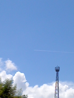 シャボン玉もした。写真は実家から見た夏空。