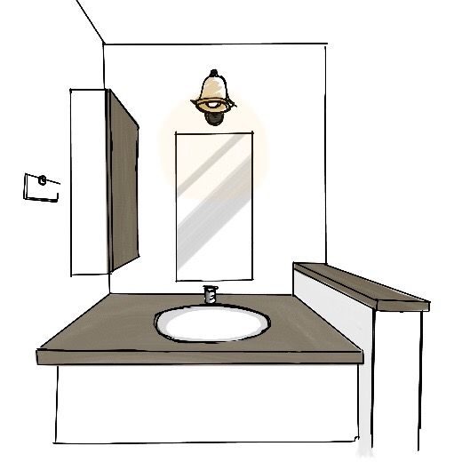 新築を建てる際の照明計画って電気図面が複雑だからハウスメーカーさんに任せっぱなしになっていませんか?細かいところですがこんなところに注意してみましょう!例えば手洗い前の照明器具ですがちゃんと鏡の真上に来ていますか??確認をしておかないとよくこのように収納が脇についているタイプだと照明器具が鏡とずれてしまうことも・・・・図面ではなかなか見つけられないところですが自分のイメージを口で伝えたり簡単にイラストにして担当の営業さんに伝えてみては?