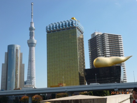 40名との面接挫折だらけのアル中お気楽ダイエット日記 この日記は11月17日の朝に、昨日の話題を書いたものです。今朝の体 重:77.8kg 前日比プラス0.1kg昨日の飲酒量: ノーアルコール達成!!昨日の歩行数:11,350歩生まれて初めての経験をしました。たった1日で40名ちかい人との面談です。M&Aなので、事実上全員を再雇用する予定です。だからあまり時間はかかりません。長くてもお一人10分程度・・・普段のわが社の面接は1時間以上ですから、大したことはありません。最初に全員を集めて共通部分をお話しておいたのが効を奏しました。同じ話をしなくて済みましたから。でも・・・人数が人数ですから、さすがにくたびれました。帰社後もいろいろあって、くたびれ果て自宅にもどったら深夜1時でした。風呂にも入らず、大好きなビールにもわき目もふらず、バタンキューでした。おかげでノーアルコール達成です。激増した体重を、一気に減らすにはお酒を抜くに限りますから。今朝、「どれくらい減っているかなぁ~?」とにんまりしながら体重計に乗ってガクゼン!前日比プラス0.1kgでした。イメージではマイナス1kgだったのにぃ~写真は東京スカイツリーと「○○○のオブジェ」○に入るのは、○ンコではありません。ほのおです。”躍進するアサヒビールの心”を象徴しているとのことどうみても、炎には見えんですが、デザイナーのフランス人の感性には炎は金色なのでしょう。 ♪♪♪ 私のダイエット目標 ♪♪♪ 2013年10月31日期限 目標68.0kg BMI=21.0を達成します。 2012年11月6日再スタートしました。 再スタート時77.2kg 2007年4月30日ダイエット日記スタート時82.5kg ♪♪♪ 私のダイエット方針 ♪♪♪ 朝と昼は、玄米を中心に少量でもきちんと食べる。夜は極力減らす。 出来るだけ節酒につとめ、お酒は3つ(個、本、杯)までとする。 1万歩以上歩く。失敗してもめげない。いつも笑顔でいる。 ---------------------------------------------------------らぶらぶメールはこちら ke1アットマークpeacom.co.jp よりよいモノ創りで社会に貢献する http://www.peacom.co.jp/