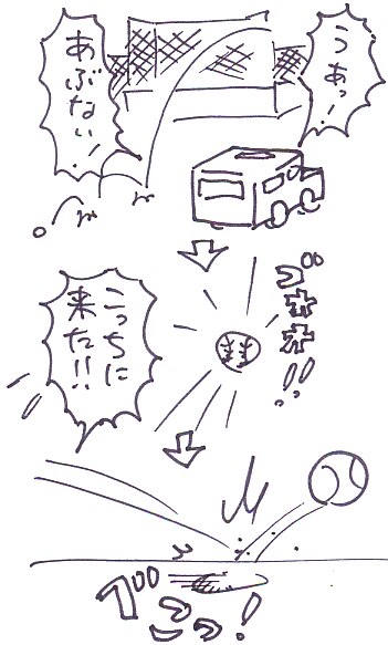 そしたら試合終盤くらいに、駐車場まで球が飛んでくるようになりました。