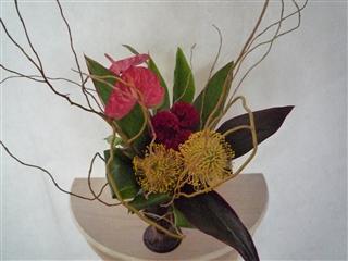 お花のレッスンに行ってきました。夏の間は生花を使わなかったので、久しぶりにお花に触れた気がしました。 今回は花束をつくりました。花材をスパイラルに組んでいくのですが、慣れないので、花材を持つ左手に力が入って固まったようになってしまいます。先生には「もっと柔らかく持ってね~」といつも注意されてます・・・。 花材ドラセナ ケイトウ ピンクッション 雲竜柳 飾る時は花器に入れて。 玄関が明るくなりました。お花があるといいですね。