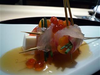 「梶川」で持ち込みワインでの食事会をしました。今回のメンバーとは2回目の会でした。 嶺岡豆腐(牛乳とマスカルポーネチーズの豆腐)車海老・白身魚の昆布〆からすみ巻き嶺岡豆腐はとってもまろやかエスプリド・ジローと合せたのですが、暑い1日でしたので皆さん足りなかったようです。 飛竜頭・長茄子・松茸目の前で揚げた、出来立ての飛竜頭。表面がまだかりっとしていて、香ばしかった。サンセールを出しました。茄子・松茸とソーヴィニヨンは、相性いいですね。 もどりがつをのたたき、鯛、イカ かますウニ焼き、衣かつぎ、むかご松葉ざし美しい盛り付け取り分けた様子。焼いたウニが甘い。この2品にはヴヴレー。2004年ですのでやや熟成しており若干甘めですが、なんにでも合う便利な美味しいワインです。 鱧と松茸のしゃぶしゃぶ松茸を最初にいれて、鱧をしゃぶしゃぶ。付けなくても良かったが、添えられたポン酢が美味。アルターレ、樽香のなかにフルーティーな香りがミックスし、鱧がより美味しくいただけました。 焼き茄子とズワイガニ、とんぶり 冷やしあんかけのそうめん茄子とカニがからんで、美味い。シャブリ、でしゃばらず料理を引き立てていました。 朴葉石焼 今市かぶら、牛肉、まい茸、蒸しアワビヴィトフスカ、イタリアの土着品種のワイン。こんな感じのワインが好きだな~。 あゆごはん 赤出し 香の物あゆはしっかり味がついていて、香りもよく、とても美味しかった。 ざくろのゼリーと上新粉クリーム 上用まんじゅうほんのり温かいまんじゅうは優しい味わい。 ワイン1.SPエスプリ・ド・ジローNVアンリ・ジロー2.Wシャブリ・プルミエ・クリュ・ヴァイヨンキュベ・ギィ・モロー2005Dクリスチャン・モロー3.Wサンセール・ブラン・ジェネラシオンXIX2005アルフォンス・メロ4.ヴヴレー・ル・オー・リュー・セック2004ドメーヌ・ユエ ×25.ヴィトフスカ2002ヴォドビー・ヴェッチ6.アルターレ2005マラミエーロ 今回も美味しく頂きました。 梶川さん、甲斐さん、ご参加の皆さん、ありがとうございました。