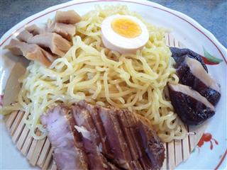 秋分の日、monzaburo-もanzuも午前中なんの予定もなく、久しぶりにゆっくり朝寝坊しました。 ブランチは「菊丸」で蕎麦を、と行ったら、定休日!そこで近くにある「らーめん 味楽」に、伺いました。 久しぶりに行ったら新しいメニューに、冷やし麺とつけ麺があったのでこれを注文。 anzuの頼んだ つけ麺つけだれは普通のラーメンのスープ(多分)に、薬味としてネギとしょうががついてきました。 monzaburo-の頼んだ 冷やし麺と、チャーシュー入り炊き込みご飯 冷やし麺は甘酸っぱいタレで、あっさり。 この日は暑かったので、2人とも冷たい系を頼みましたが、普通のラーメンも食べたかった・・・、と、店を出てから意見が一致。次はラーメンにしよう。