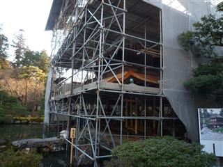日曜日、冬の京都に行ってきました。「なかひがし」での昼宴が一番の目的でしたが、その記事は後日。 昼食後、大人の修学旅行をしてきました。お店が銀閣寺からスグの場所だったので、ふらふらとほろ酔いの大人6人で、 「実は初銀閣寺なんですぅ」 「修学旅行以来です~!」 「修学旅行は、長野だったよ!!」 とか、懐かしい修学旅行という言葉の響きに浸りながら、酔いざましがてら向かいました。 「なかひがし」を出る際に女将からこれからどうされるのですかと聞かれたので、「銀閣寺を観てきます!!」とお話したら、 「いつもと違う銀閣寺が観れますよ!!!!」と、嬉しそうに女将が・・・・。 行ってみて納得。 衣服衣を全て剥ぎ取られた、銀閣寺が・・・・・・・。 こんな姿を観る事もめったにない。 ありがたく、拝観してきました。 そして、実は、御朱印を集めている私達。 この日はうっかり御朱印帳を忘れてしまったので、記帳はしていただけなかったので、お札をいただいて来ました。