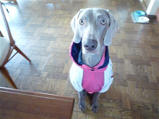 一昨日は久しぶりの雨模様で、ずいぶん冷え込みました。 寒さにめっきり弱いmonzaburo-と杏、でも散歩はしなきゃとレインコートを着せて出かけるも、外にでたら1歩も動かない。 「行くよ!」と掛け声をかけても、動かない。仕方なく敷地から出ることなく、帰宅。 雨が嫌いなのか、レインコートが嫌いなのか?? でもせっかくのレインコートだから、馴れさせるしかないと思い、昨日は晴れていたけど、レインコートで過ごさせる事にしました。 朝ごはんの後は、歯磨き用ガムの時間。その時は、「ピシ!」とお座りで催促。 お手、かえ手、両手の儀式をして、やっとガムゲット!しばらくはダレも邪魔できない時間が始まりました。そう、食べ終わるまでは紋三郎もanzuも、しかもmonzaburo-も立ち入る事が出来ません。 真剣です。でも床が、よだれで・・・・。 お腹もいっぱいになり、ガムも食べて満足な杏、あとはただひたすら寝る。 たまに起きるけど・・・。 さらに寝る。 こうして杏の1日は終わっていくのだが、結局家の中だと気にせず、普通に生活してました。結構暖かいから、いい防寒スーツとでも思ったのでしょうか?? 今度の雨の時には、少しは動いてくれるといいのですが・・・。