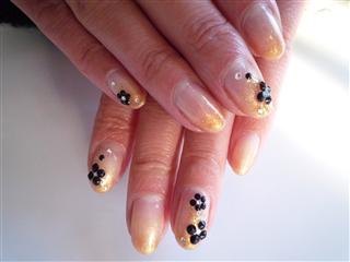 今年初のネイルサロンに行ってきました 私の今年のラッキーカラーはゴールドらしいので、カラーは決まりです ゴールドでグラデーションにして、左右2本ずつ黒のストーンでお花のアートをつけました。 右手 左手 1本だけだとインパクトがありすぎたので、2本ずつつけました。黒のストーンのお花はラブリーすぎず、なかなかお気に入り
