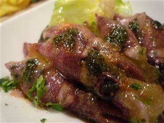 1月にスタッフとの新年会で伺ったのが最後、とういうことは2人で伺うのは今年初めて!? 最近いろいろ予定が入っていたので、近場のお店に行く事が出来なかったのです。いつものように電話して、いつものようにワインを1本持って出かけました。 お花の教室でお昼が遅めのanzuは、あまりお腹がすいていない様子。いつもの量は食べれないと主張するanzuを聞き流し、結局いつもの量を注文。 ホタルイカのマリネ ジェノベーゼとボッタルガ(イタリア産カラスミ)がかかっていて、ワインに合う味付けでした。これで525円、お得のような気がします。 ちなみに注文した白ワインは、キアランダ2003 ドンナフガータ2003年と言う事はリリースしてしばらく経ってるので、ずいぶん丸く感じました。樽香が結構強かったイメージがあったのですが、美味く溶け込んでました。 水牛モッツァレラのカプレーゼ市販のモッツァレラとは、コクが全然違います。 サービスでいただいた、パルマ産生ハムやはり切りたての生ハムは、美味しいですよね! モルタデッラのサラダ風ピッツァエンダイブとラディッキオがアクセントになってます。クチーナのピッツァの生地は、薄いのですがこの食感が堪らんです。 そしてそろそろ持ち込んだワイン登場!!モンテヴェトラーノ1999 シルヴィア・インパラートラッピングしてセラーで保管していたのですが、後ろの壁に当たっていたみたいで中に水が入りこんなラベルになってしまってました。(30年くらい経過したような感じになってますね)カベルネ主体でメルローとアリアーニコのブレンド。 ラベルは痛んでましたがワインが健康体でした。(ヨカッタ、ヨカッタ) ブロッコリーのペンネ アマトリチャーナ 可愛らしいブロッコリーですが、味が濃い。 ノルウェー産の仔羊骨付きロースのオーブン焼き黒板メニューはニュージーランド産でしたが、シェフ自ら持ってきて「ノルウェー産がちょうどあったから、こっちの方が味が濃いから」と、またまたサービスしてもらっちゃった。 確かに濃いような気がする。 でもやはりこの段階でお腹が一杯に、食べれる量は確実に減少してます。 でもデザートは別腹とanzuはティラミスを注文。多めにカットしていただき、monzaburo-も参戦。2人で勝利を確かめ合い、笑顔でお店を後にしました。 いつもいつもご馳走さまです! クチーナ名古屋市天白区山郷町59052-807-8905
