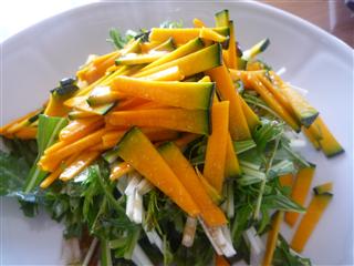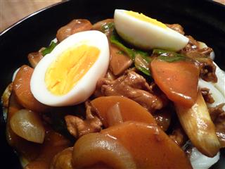 先日カクキューで購入してきた、八丁味噌カレー食べてみました。 インスタントカレーだけではいけないのでと、anzuが簡単サラダを。水菜と南瓜のサラダ そして真打登場!!じゃじゃーん!!!って、見た目普通。 香りも味噌の香り感じない・・・。 食べてみる。 一口め 「マイルドなカレー、味噌はどこ?と口の中で探す。」 「あったあった、ゆっくり味噌の味が染み出てきた。」 2口め以降 「何回か口に運んでくると、八丁味噌ベースが明確になってくる。」 「八丁味噌がコクを出しているが辛さを押さえ、マイルドなカレーに仕上がってました。」 個人的にはもっと味噌を強くしても、いいような気がしました。 次回カクキューに行った時にまた買うかといったら、 微妙・・・・・。 でもいい経験でした。