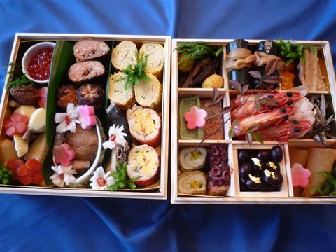 今年は、よ兵のお節をたのみました。 一の重車海老 黒豆 田つくり 数の子醤油漬け 昆布巻き たたき牛蒡 南蛮モロコ 焼き栗平目白板巻き タコ酢 金柑甘露煮松風 揚げ麩 酢蓮根 梅麩 二の重アワビの旨煮 出し巻き玉子 いくらの醤油漬け鰆の味噌柚庵焼 金目鯛の玉子ケンチン焼子持ち鮎 菊蕪 エビ真丈煮しめ(鳥団子 竹の子 蓮根 くわい 梅人参) よ兵さんらしく出汁がしっかりしているけれど濃すぎない、上品な味で非常に美味しく頂きました。