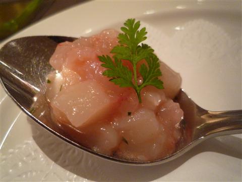 トラットリア・ケイヤではじめての持ち寄りワイン会です。 今回初参加いただいたNご夫妻、素晴らしいワインを持ってきていただきました。 口取り 甘海老と帆立のタルタルシャンパンと一緒にいただきました。一口ではもったいないので少しずつ。甘海老と帆立も食感もプリプリで美味しいです。 前菜1シャンパンビネガーでマリネした鯵と紫玉葱 オレンジとハーブのサラダと共にアジってどちらかというと、刺身でどんと食べるというイメージが僕にはあったので、上品なアジは久しぶりでした。でも何というかな~、魚の味が引き立ってるんですよね。輝いているというか、やっぱり塩の加減ですよね~。以前から慶さんは、「味のエッジがしっかりしている。」という表現をよくするのですが、まさしく切れ味のいい、エッジの効いた味に仕上がってます。ソーヴィニヨンと、よく合いました。 前菜2 フランス産ウズラと芽キャベツのパートフィロー包み焼き ゴルゴンゾーラの軽いソースで これだけですとよくわからないので、切ってみると、本当に薄い生地で、ウズラと一緒に食べると美味。今回は面白い趣向で、ここに赤ワインのブルネッロをもってきました。事前に慶さんと持ち込みワインを打ち合わせしたので、またこれもドンピチャです。ブルネッロも丁度熟成してきて、具合もよく幸せ感倍増です。 パスタ1車エビとルッコラ、ドライトマトのブランデー風味の手打ちリングイネ久しぶりの生パスタでした。ドライトマトがいい演出しています。ブランデー風味も引き立ってます。他にも2種類のフルーツトマトも使われていたので、より深い味わいになっていました。シュナン・ブランの優しい味に、うまく調和していました。 パスタ2自家製サルシッチャとラディッキオのリゾットサルシッチャというのは、イタリアのソーセージのことなんですね。自家製のサルシッチャを使ったリゾット、コクがありピノ・ノワールといただきました。んー、美味しい。 メインフランス産鳩のロースト 黒トリュフのソース椎茸が大きい!(最初にそっちに目が行ってしまいました。)こちらには86年のブルゴーニュ、ワインもいい状態でしたがそれに負けない料理。このあたりになると酔いもまわってきていたので、あまり詳しくは記憶していません。(笑) ドルチェ パイナップルの焼き菓子、ライム風味のアイスクリーム添えトカイの5プットと共にいただきました。 料理はすべて、最高!素晴らしいワインに、素晴らしい料理。至福の時を、過ごす事が出来ました。 持ち込んだワインは、SP Deutz Brut ClassicW Langhe Bianco Sauvignon2002 LA SPINETTAR Brunello Di Montalcino1997 TALENTI W Clos de la Coulee de Serrant2007 NICOLAS JOLYR Clos de Vougeot Grand Cru1996 JEAN RAPHETR Beaune Sizies1986 MAISON LEROY Tokaji Aszu 5 Puttonyos 参加していただいた皆さん、ありがとうございました。 慶さん、ご馳走さまでした。 Trattoria Keiyaトラットリア・ケイヤ名古屋市東区東桜1-6-3ユニーブル栄2F奥052-973-1230