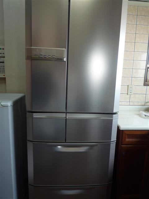 やっと新しい冷蔵庫が届きました。 扉を閉めるのにコツがいるようになり、そろそろ壊れそうだったので思い切って買い換えました。 先日電気屋さんに行っていろいろ話を聞いて、PanasonicかHITACHIのどちらにしようか迷ってました。 結局HITACHIと決めて買いに行ったのですが、結局ウチに届いたのは・・・・・。 なな、なんと、まさかの大どんでん返しのMITSUBISHIでした。(爆) 真空チルドのHITACHI、大容量の野菜室のPanasonic。 悩みに悩んだ挙句、結局決め手は、冷蔵室の間仕切りが少なく、動くん棚のあるMITSUBISHI。 そしてもっとも大きな要因は、まだこの期に及んで迷っている僕たちを尻目に、さっさとMITSUBISHIを、購入した人がいたから。 人に左右されやすい僕たちです。 でも実は違いますよ、コンプレッサーの信頼度はこのメーカーが一番だということ。冷蔵室の前面からも、冷風が流れるということが心を奪われました。 ともかく、これでひとつの心配がなくなりました。